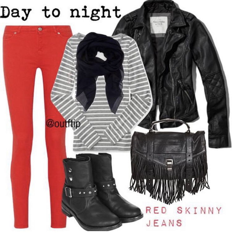 Hoy les quiero mostrar como se puede combinar unos skinny jeans rojos tanto para usarlos en el día como para usarlos en la noche. Continúen leyendo.